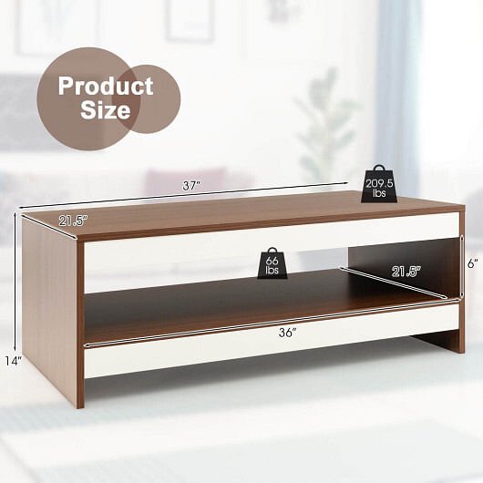 37 Inch 2-Tier Rectangle Wooden Coffee Table with Storage Shelf-Wulnat - Color: Walnut - Size: 2-Tier