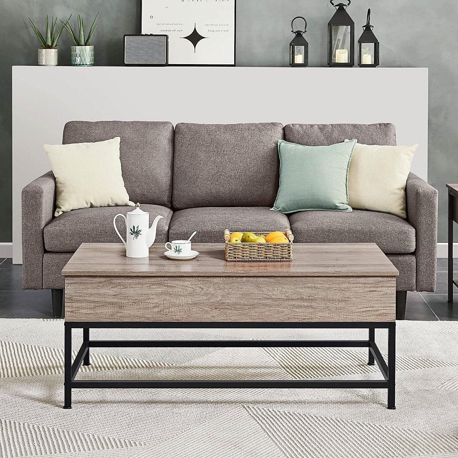 Modern Metal Wood Lift-Top Coffee Table Sofa Laptop Desk in Grey Wood Finish