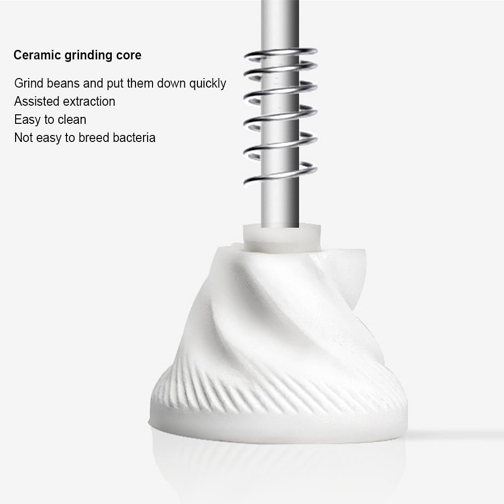 Upgraded milky white ceramic grinding core, which can be washed with water, has no peculiar smell, grinds evenly, and is not easy to generate heat