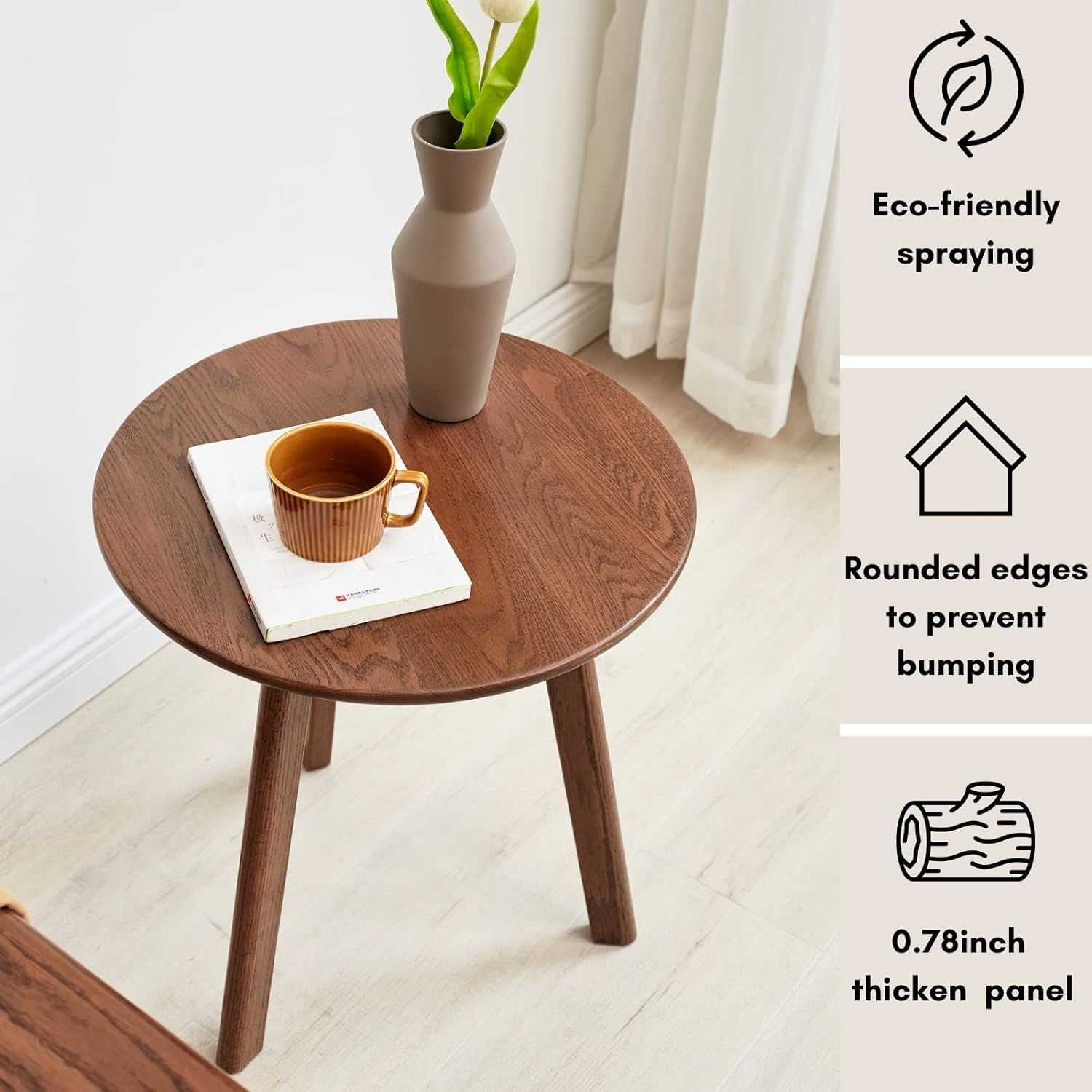 Home > Round Side Table - 100% Natural Solid Wood - 3 Legged Wood End Table for Living Room - Small, Elegant Round End Table- Eco